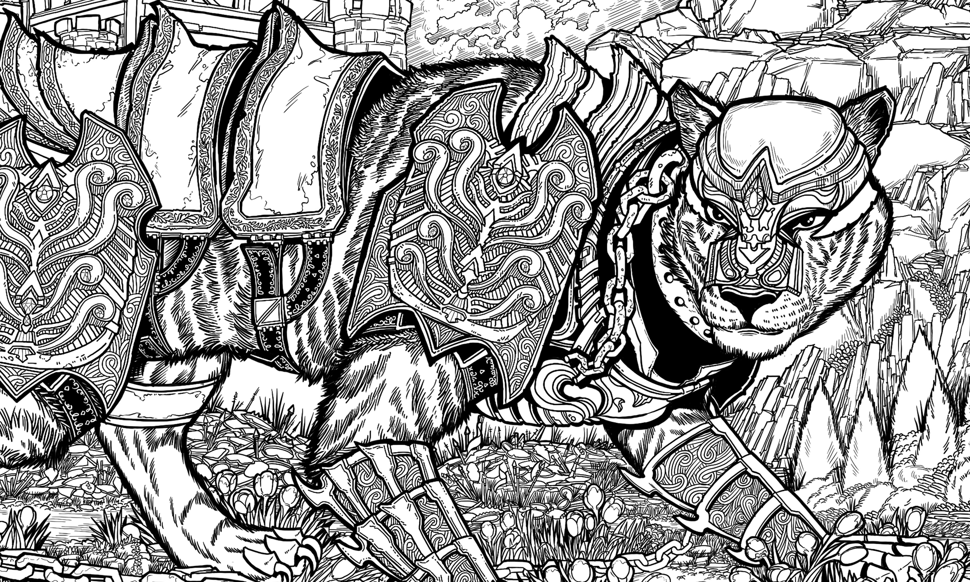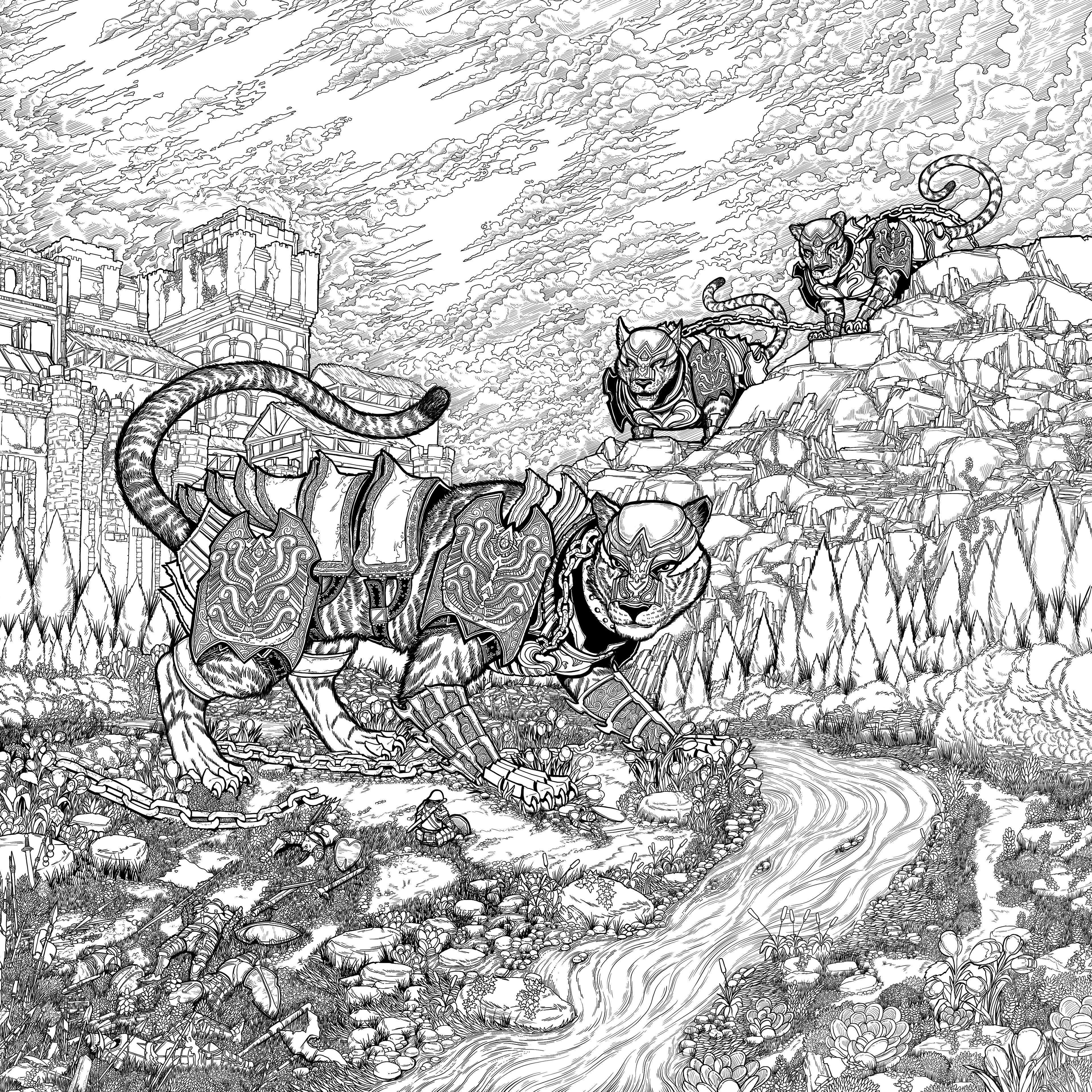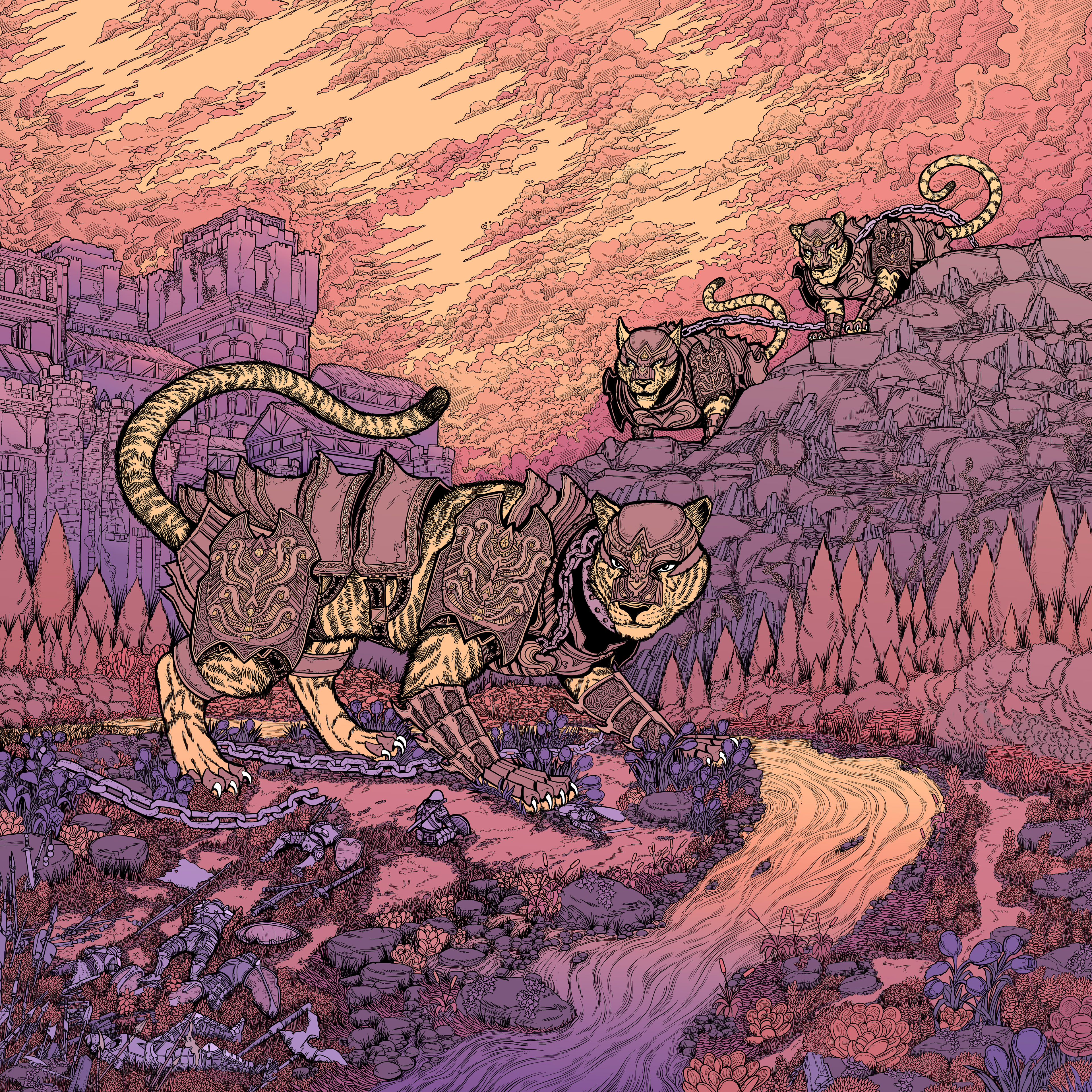 "They say the cats are ageless; the hands that forged and fastened their armor are forgotten to history. Our forebears must have been giants to control such beasts, grown large to surpass some harsh challenge set by the world. But the giants are gone, and the chains on their beasts have broken, and likewise we are broken. Scattered among rocks, crushed in our armor, pristine blades flung from our hands having struck neither in provocation or response. If those who follow us are not giants, then we shall be followed by none at all."