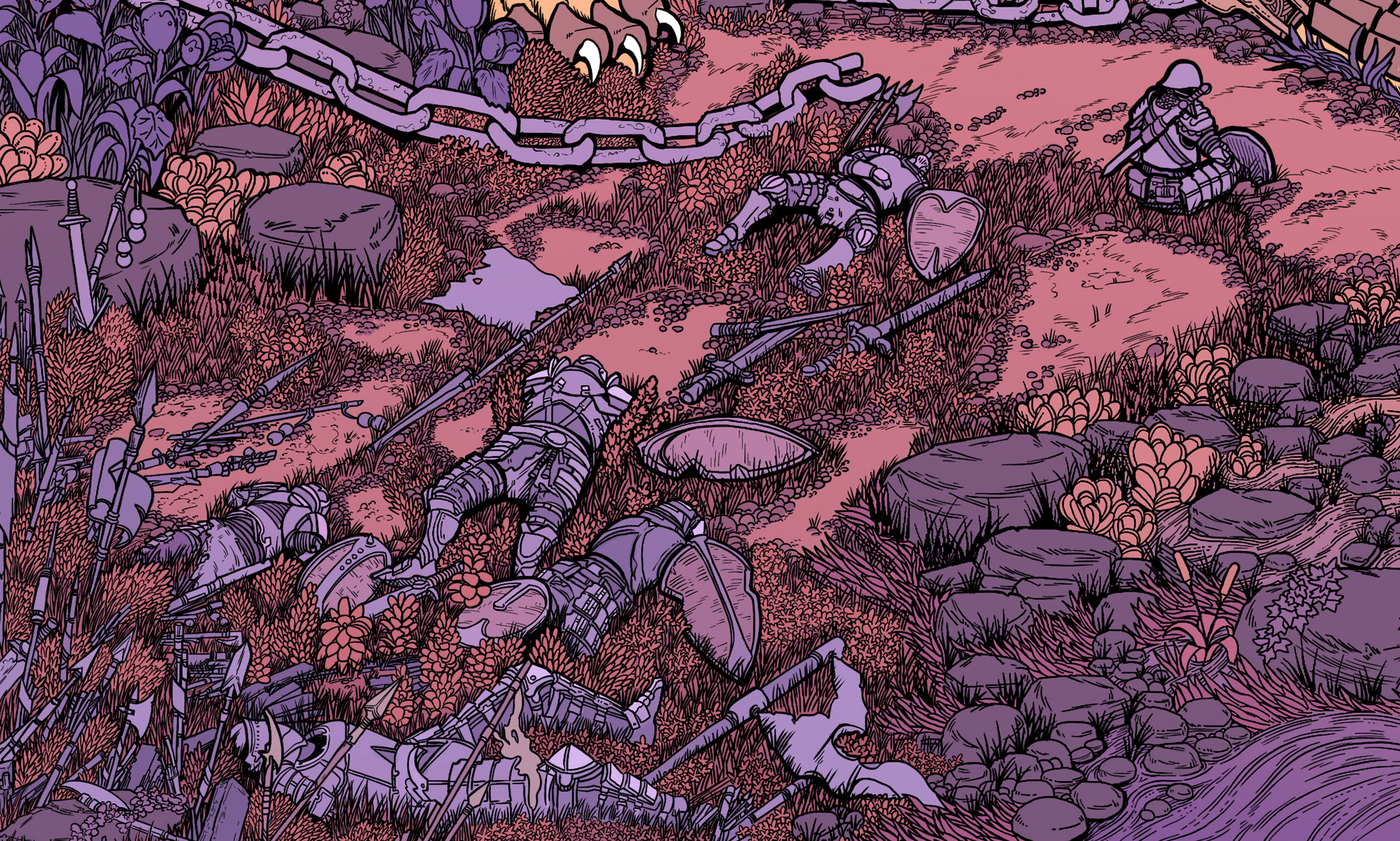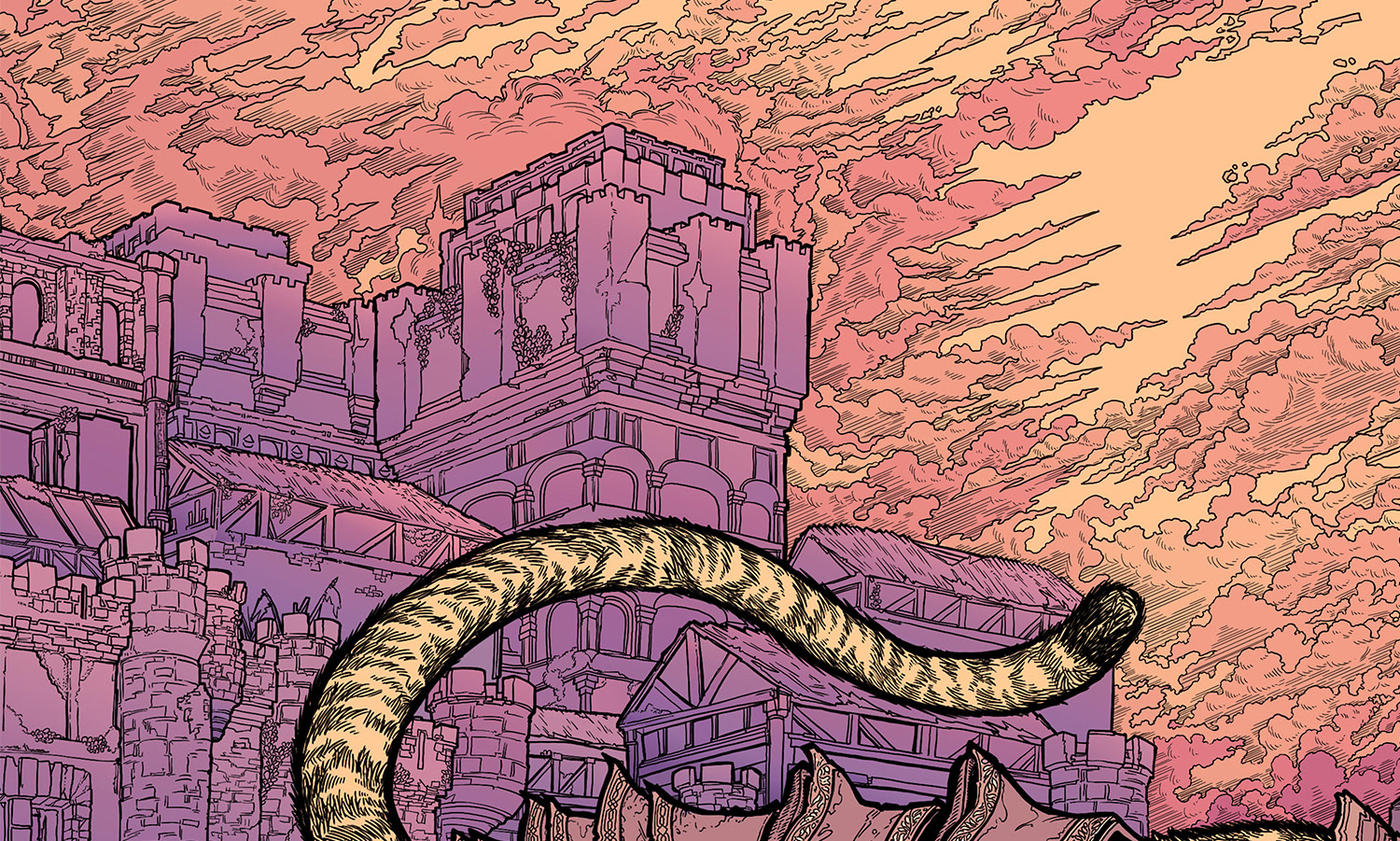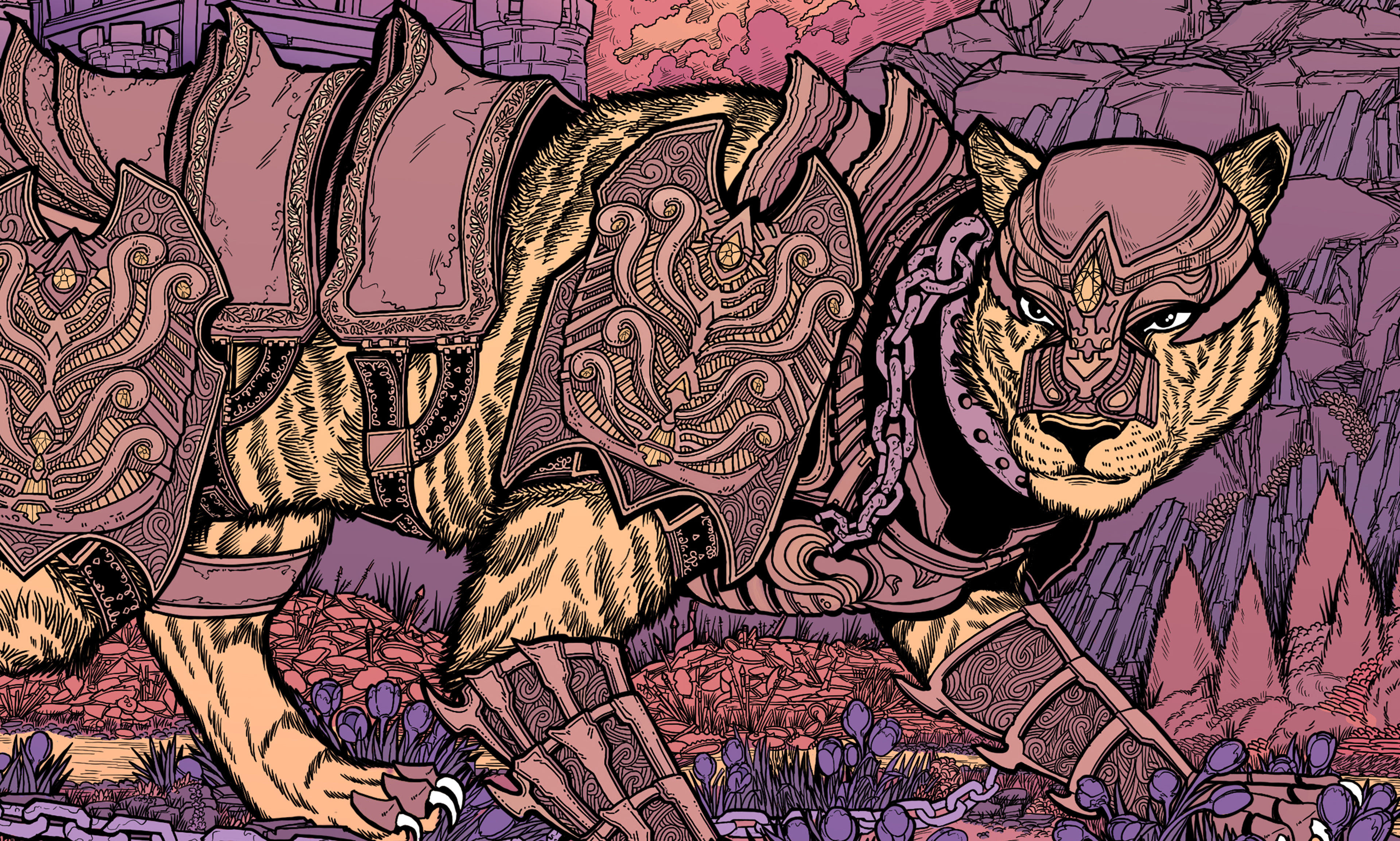 "They say the cats are ageless; the hands that forged and fastened their armor are forgotten to history. Our forebears must have been giants to control such beasts, grown large to surpass some harsh challenge set by the world. But the giants are gone, and the chains on their beasts have broken, and likewise we are broken. Scattered among rocks, crushed in our armor, pristine blades flung from our hands having struck neither in provocation or response. If those who follow us are not giants, then we shall be followed by none at all."
