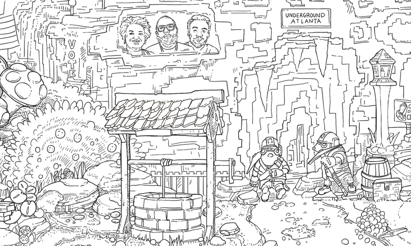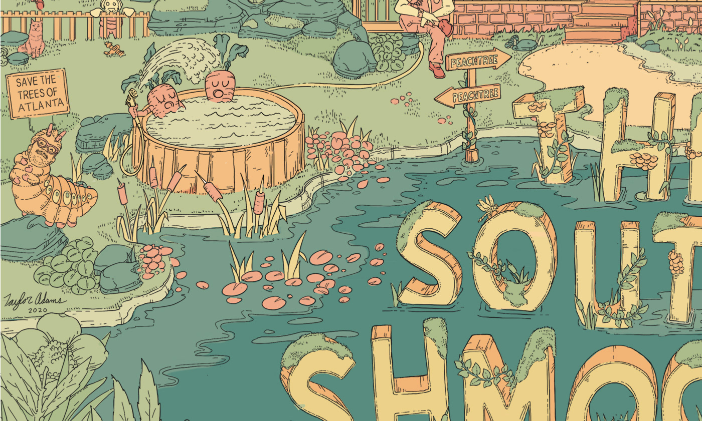 Originally I was tasked to create a minimal vector logo for The Southern Shmooze ~ this evolved into an illustration with a lot of detail and an almost "Easter egg" like feel to the artwork. All of the artwork is centered around Atlanta-centric things. The total list of Easter eggs is around 30+.