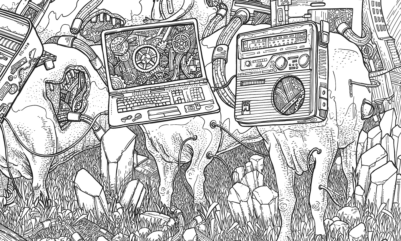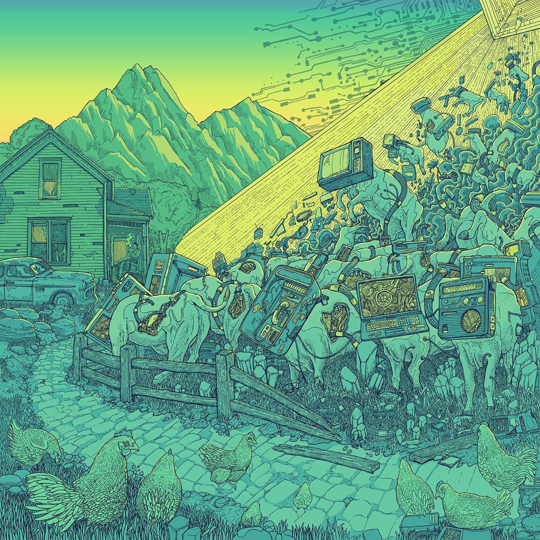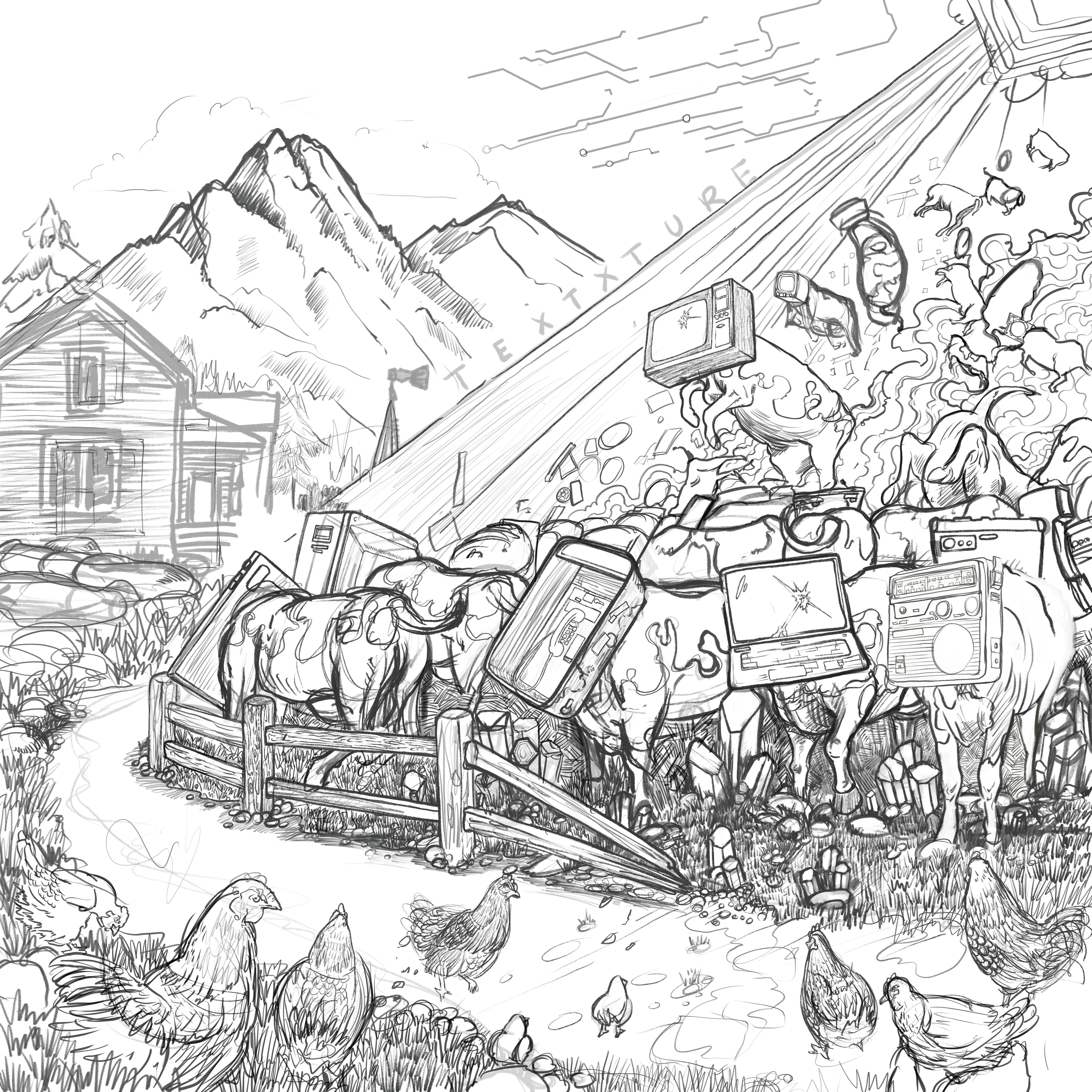 Here's the illustration for New Jersey math / jazz group The Planet You. Their core concept for the group is about the rapid evolution of technology and society's role within it. You can see some of my thought process in the sketches below sorting out this concept.