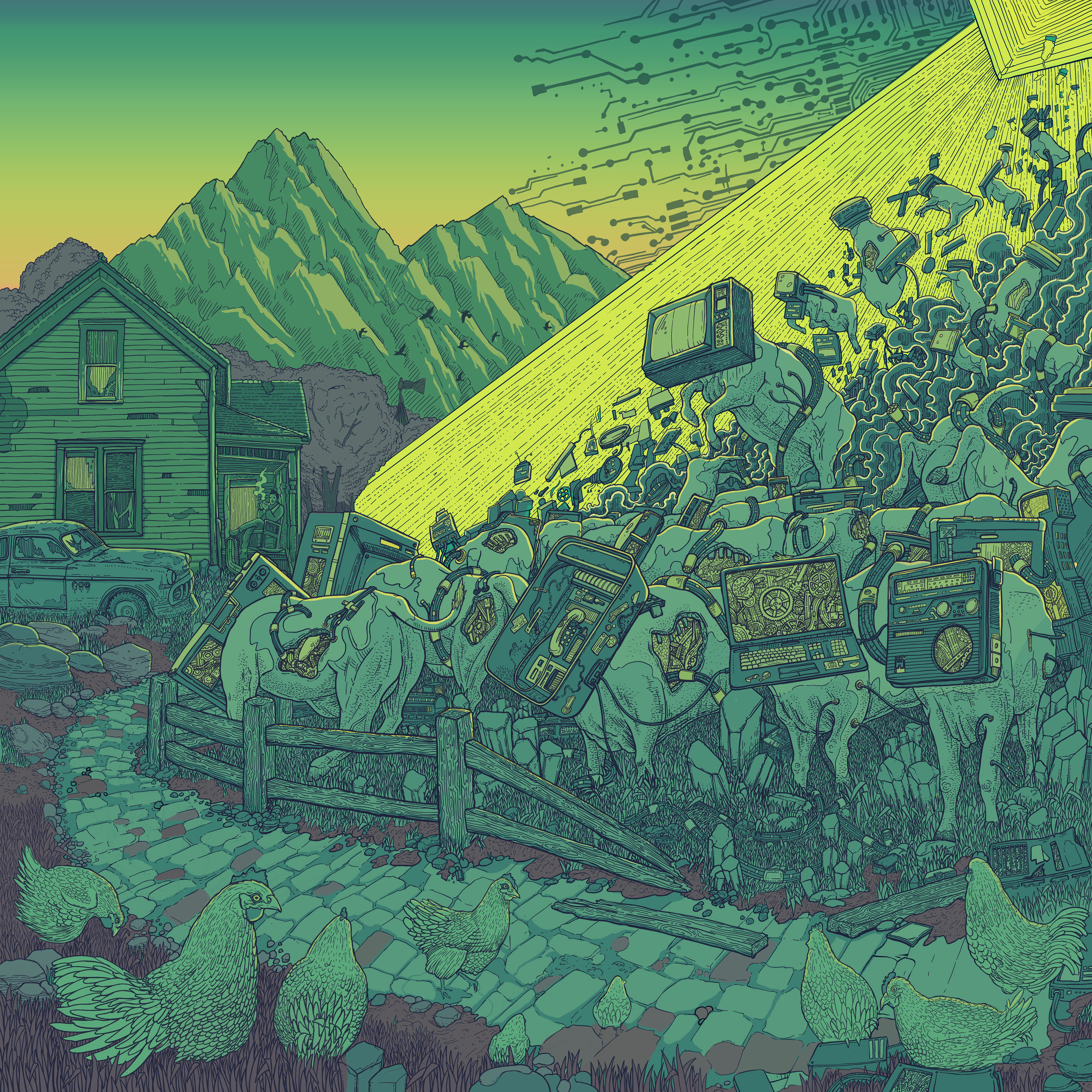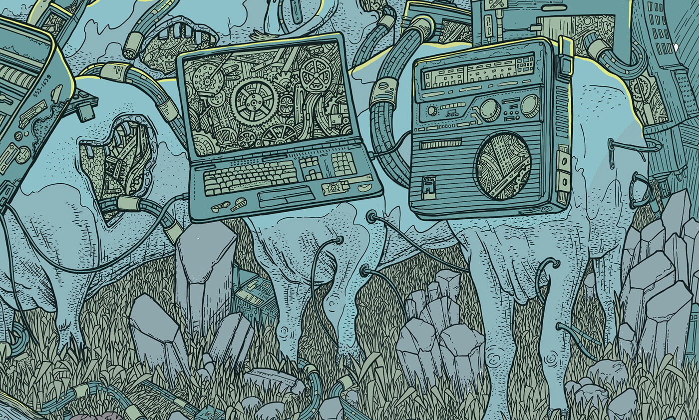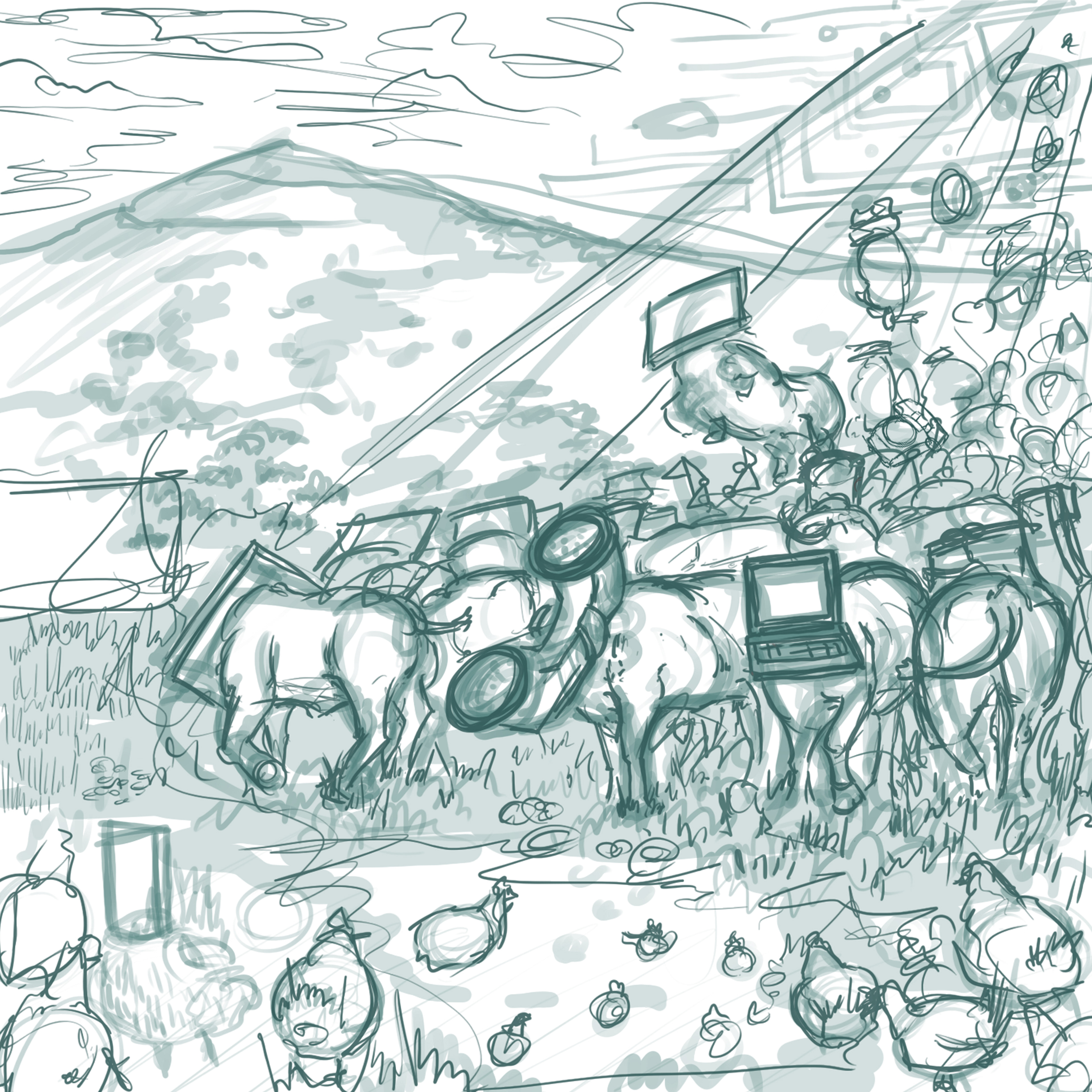 Here's the illustration for New Jersey math / jazz group The Planet You. Their core concept for the group is about the rapid evolution of technology and society's role within it. You can see some of my thought process in the sketches below sorting out this concept.