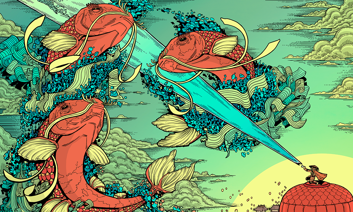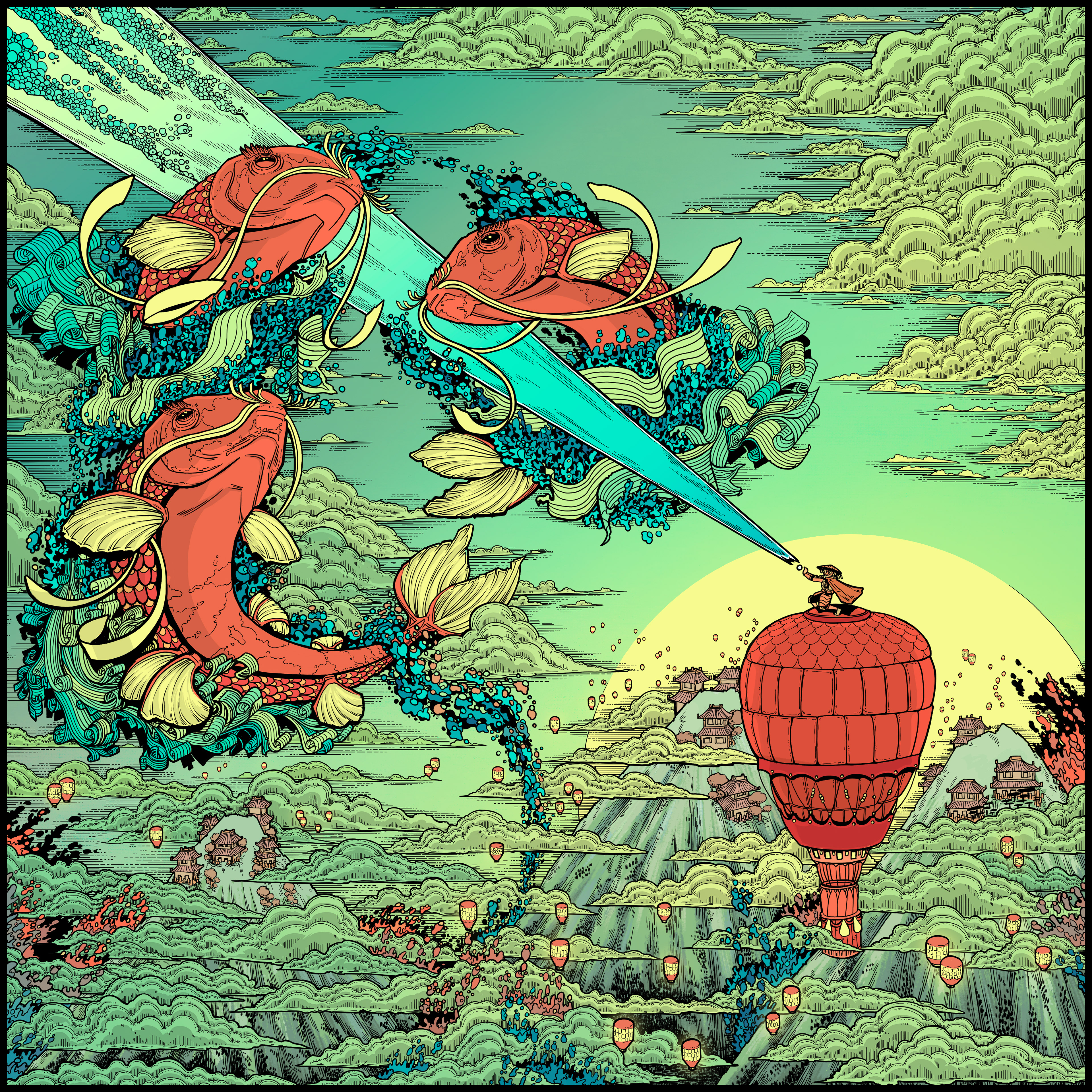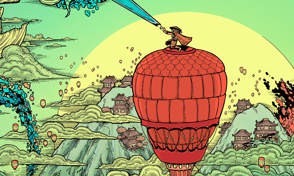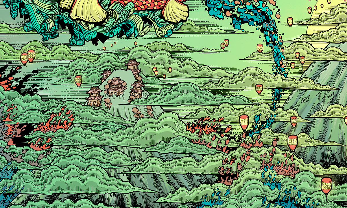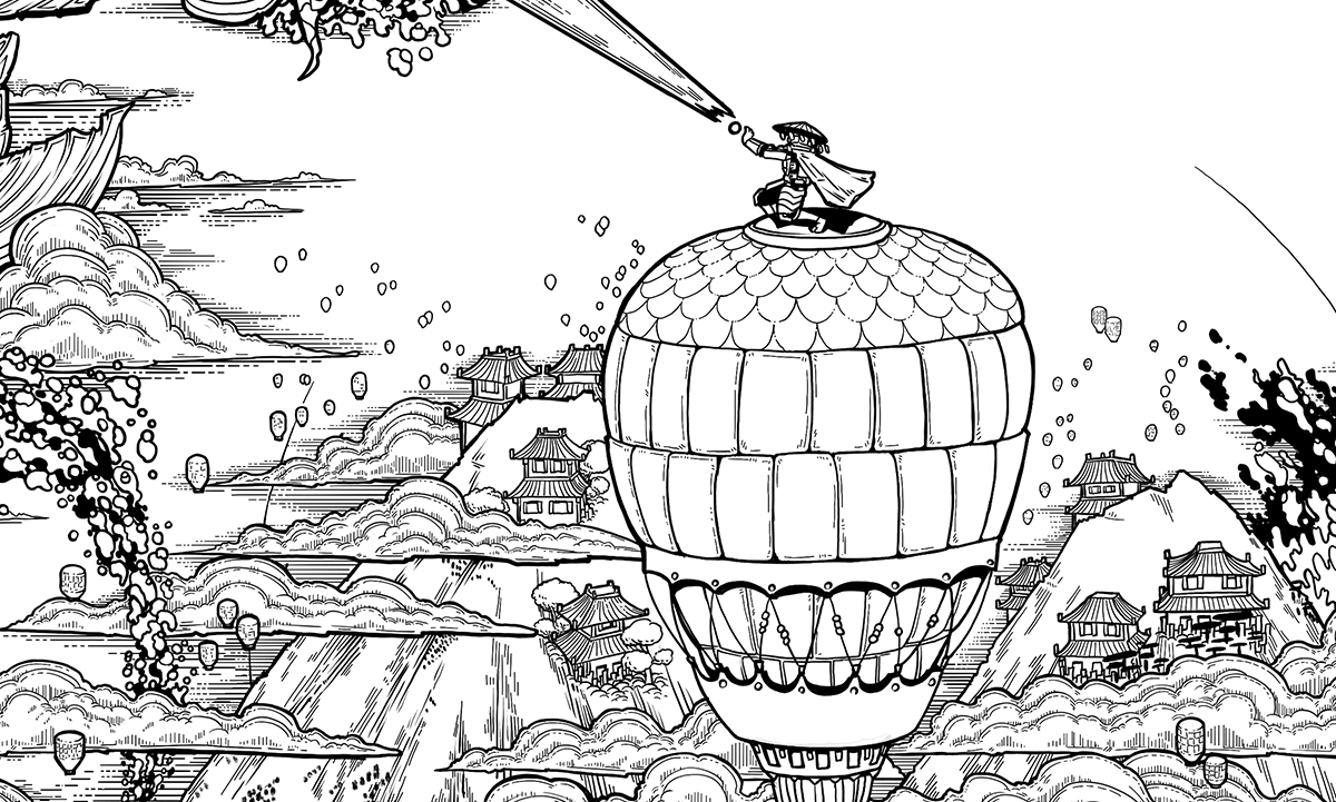 The greatest Absu tradition is this: Once a year, the tribe allows the Great Fire to trespass upon Ki, for fire is good. It burns away sickness, subversion and sin. But fire's nature is greedy; soon it takes too much. The tribe sends up lanterns to call for aid, and the Speaker rides a large balloon into the sky. And there they lure the mighty Oan, the fish-like gods of the Absu, with a jet of water — living history, the story of the Absu. The Oan love the stories, old and new, and they bless Ki with abundant rain to chase away the Great Fire."