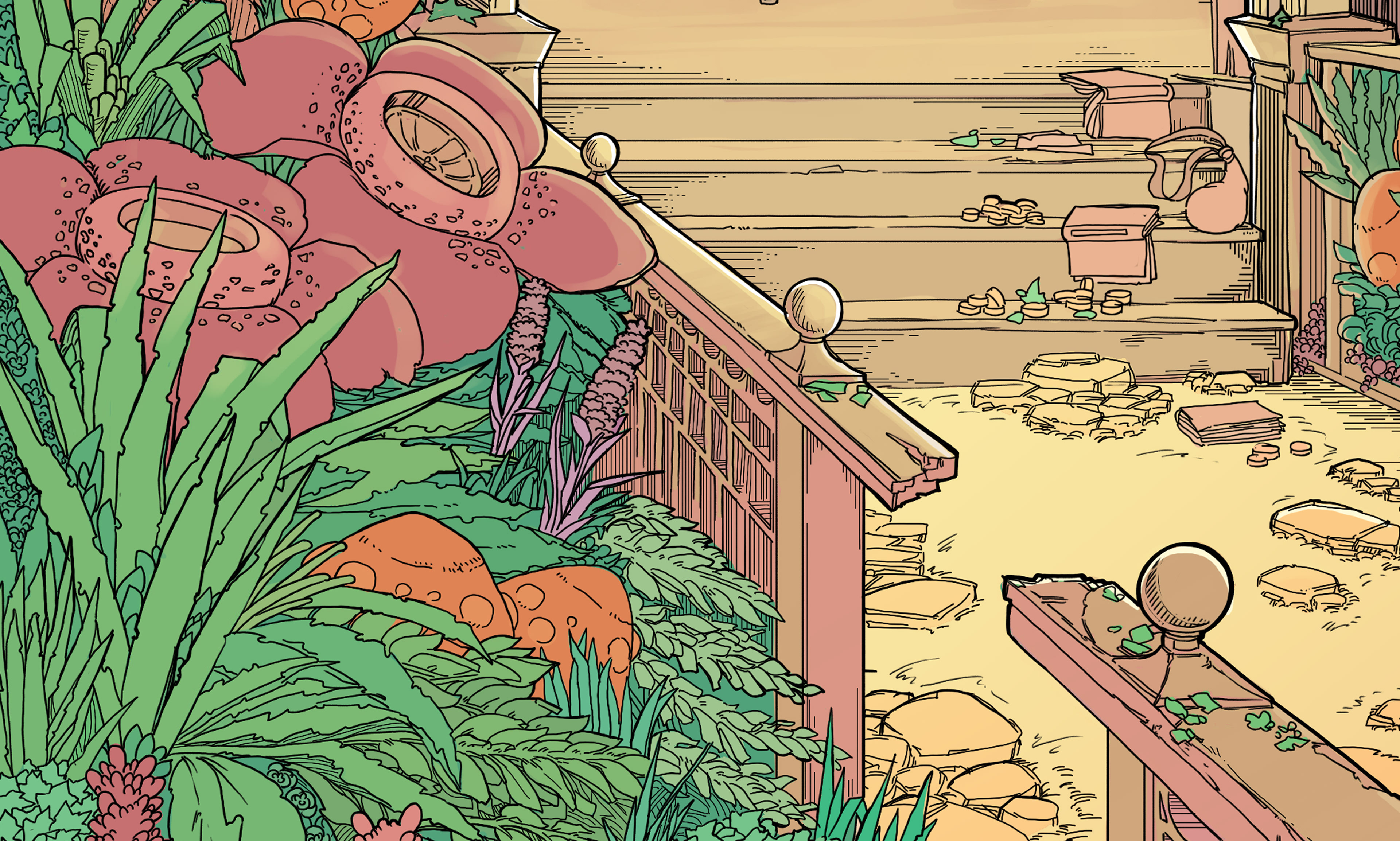 In truth, Charles, that any of this should still exist in a presentable shape is an unexpected miracle. Nature has already begun to reclaim the space. Many of the plants are quite hardy and, of course, toxic; I see venora and cuttlecrop, but thankfully nothing that releases spores, and hardly anything contemporary to the era of the barrow’s construction. We should be safe with minimal equipment.