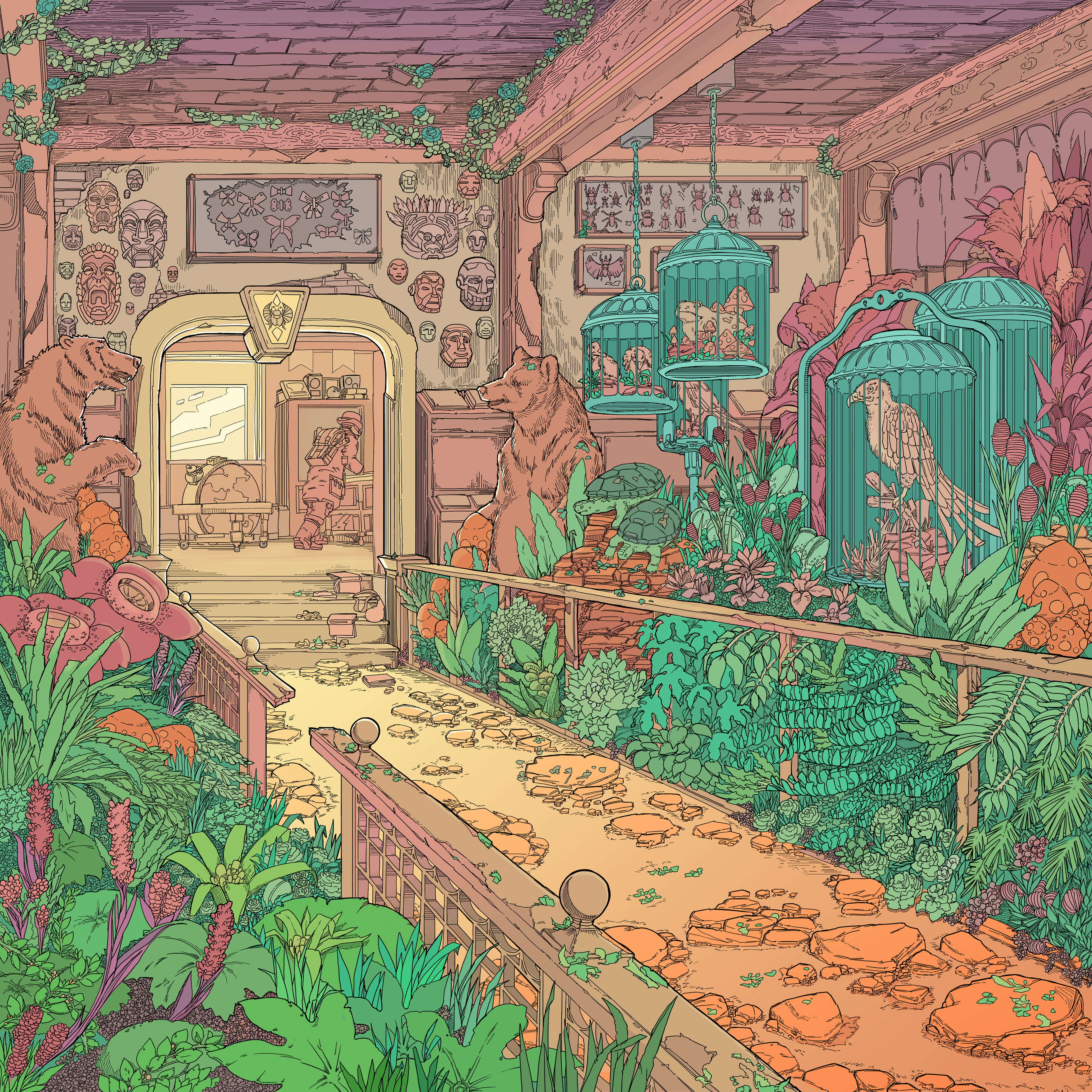 … He had two of them — grizzlies, I think, if I remember the old field guides Frederickson and I found in that hidden library last year — flanking the path through a room just beyond his den. They were taxidermied, of course; bailiffs guarding the exit of a courtroom where dozens of creatures great and small had been judged beautiful enough to skin and mount. As I excavate more of this buried household I think these displays serve only the former owner’s ego, rather than any passion for the creatures or the craft on display. I would rather know the name of the taxidermist than the man who paid him.